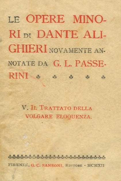 | Titolo completo | 5: Il trattato della volgare eloquenza / di Dante Alighieri ; novamente annotate da G. L. Passerini |