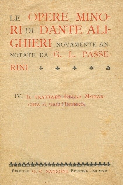 | Titolo completo | 4: Il trattato della Monarchia o dell'Impero / di Dante Alighieri ; novamente annotate da G. L. Passerini |