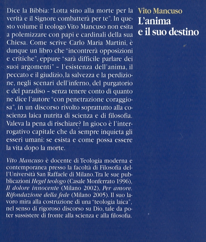 | Titolo completo | L'anima e il suo destino / Vito Mancuso ; con una lettera di Carlo Maria Martini |