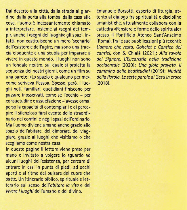 | Titolo completo | Segni dei luoghi : vivere lo spazio, abitare il senso / Emanuele Borsotti ; prefazione di Chandra Candiani |
