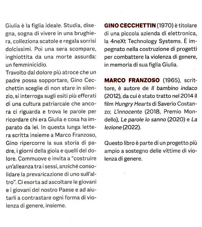 | Titolo completo | Cara Giulia : quello che ho imparato da mia figlia / Gino Cecchettin ; con Marco Franzoso |