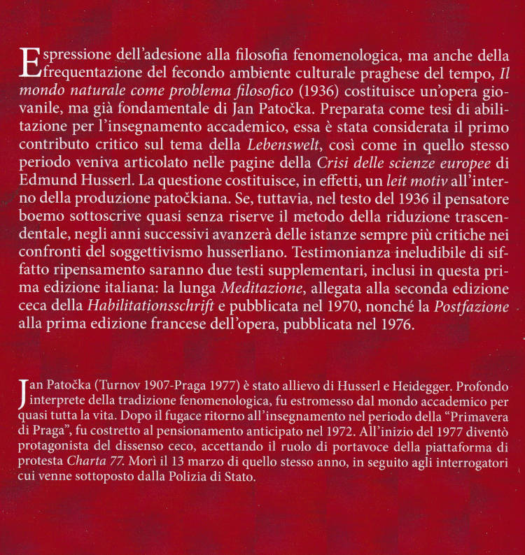 | Titolo completo | Il mondo naturale come problema filosofico / Jan Patocka ; cura e traduzione di Saverio Alessandro Matrangolo |