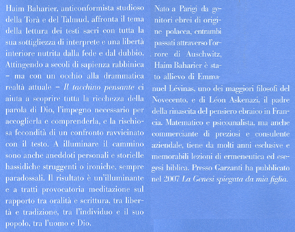 | Titolo completo | Il tacchino pensante : saggio narrativo / Haim Baharier |