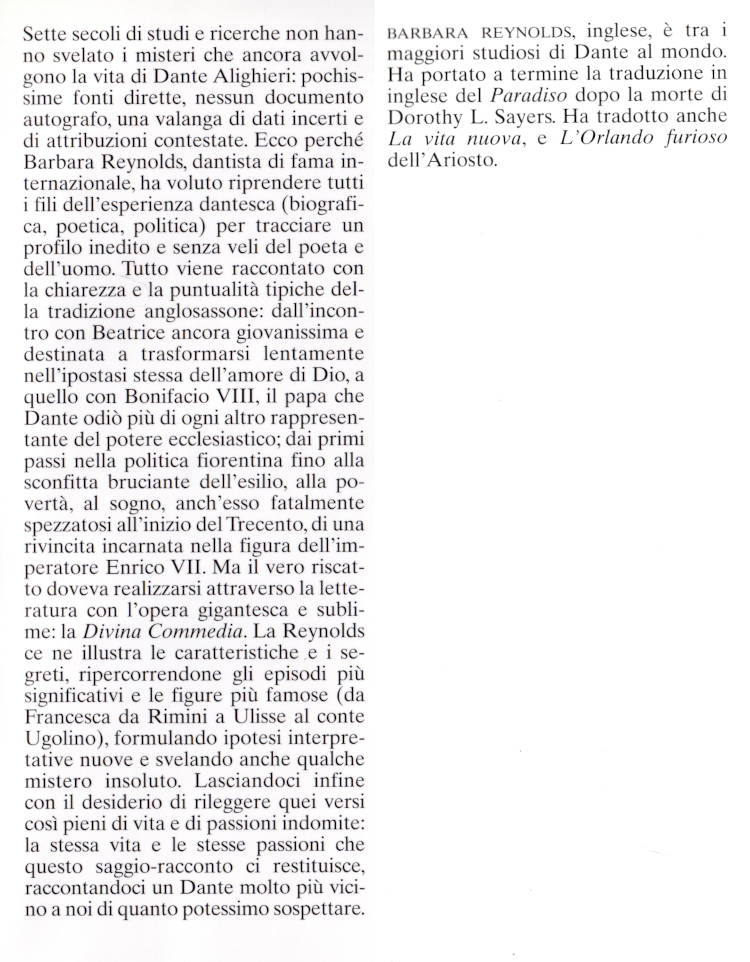| Titolo completo | Dante : la vita e l'opera / di Barbara Reynolds ; traduzione di Alessio Catania |
