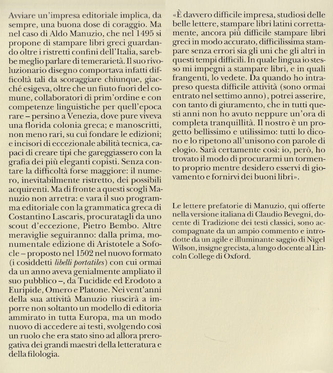 Letteratura greca - Edizioni italiane - Prefazioni - 1495-1514;
