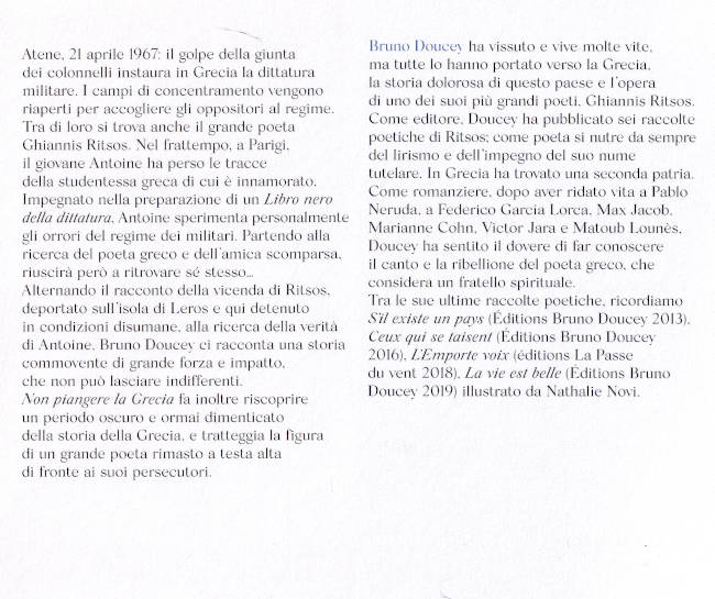 | Titolo completo | Non piangere la Grecia : romanzo / Bruno Doucey ; traduzione di Francesco Bruno |