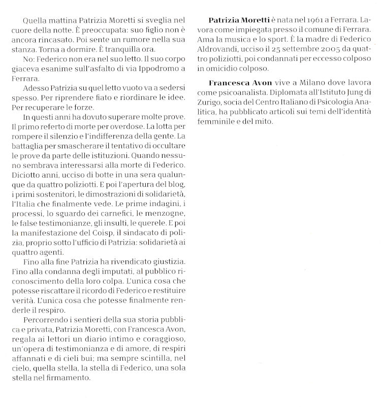 | Titolo completo | Una sola stella nel firmamento : io e mio figlio Federico Aldrovandi / Patrizia Moretti con Francesca Avon |