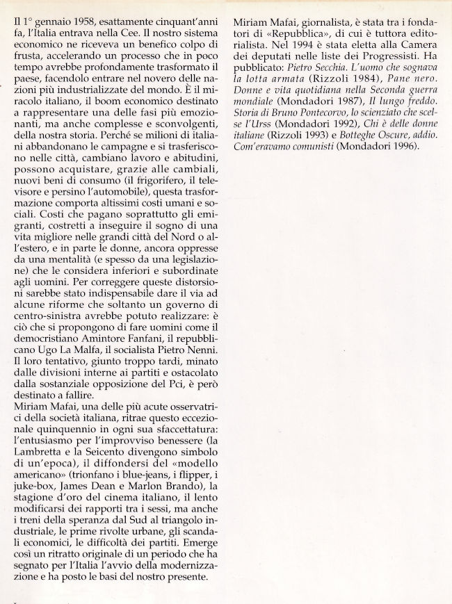 | Titolo completo | Il sorpasso : gli straordinari anni del miracolo economico, 1958-1963 / Miriam Mafai |