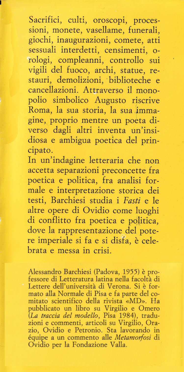 Il poeta e il principe : Ovidio e il discorso augusteo / Alessandro Barchiesi |