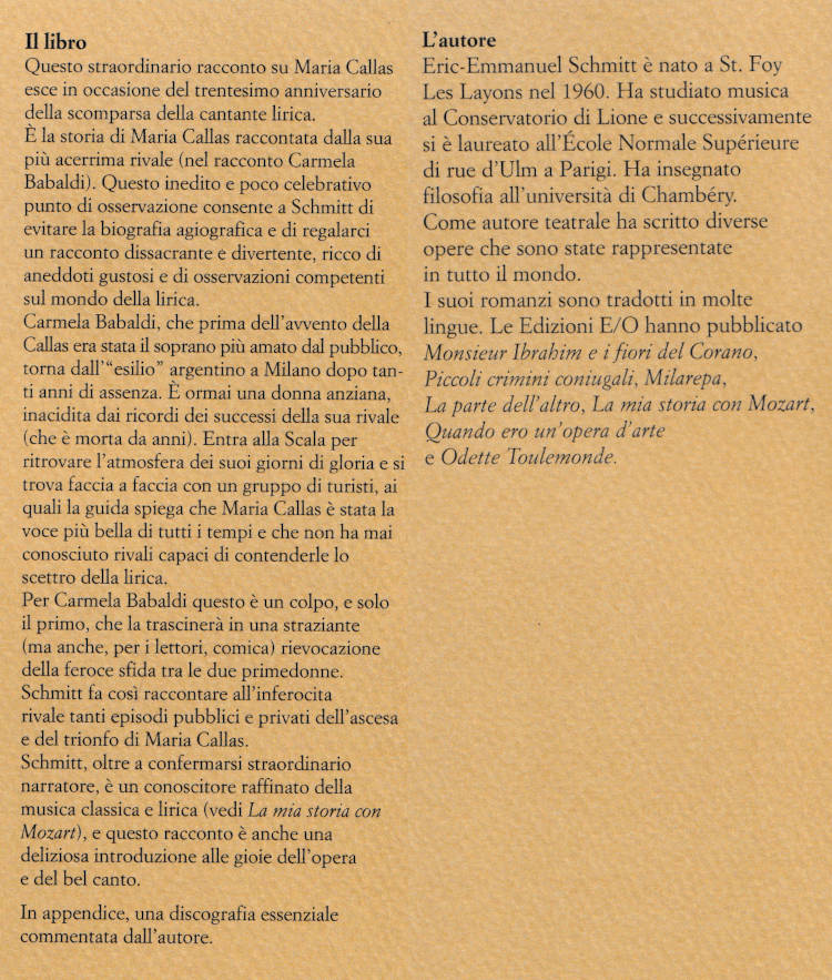 | Titolo completo | La rivale : un racconto su Maria Callas / Eric-Emmanuel Schmitt ; in appendice una discografia essenziale ; traduzione dal francese di Alberto Bracci Testasecca |