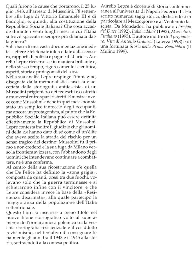 La storia della Repubblica di Mussolini : Salò: il tempo dell'odio e della violenza / Aurelio Lepre |