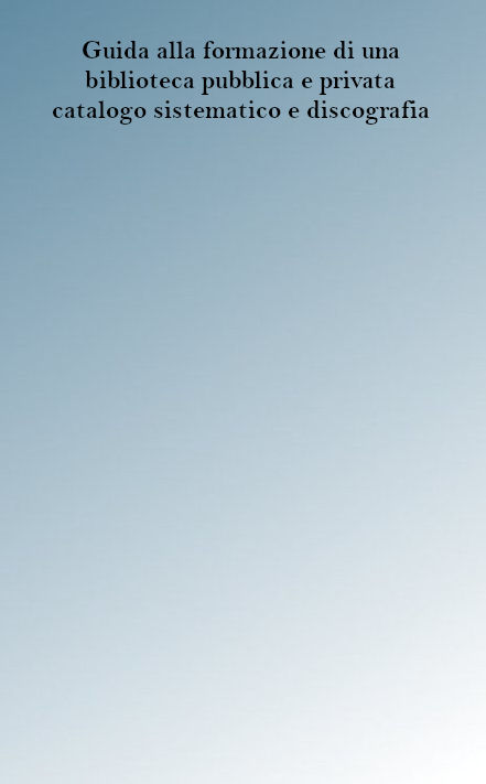 | Titolo completo | Guida alla formazione di una biblioteca pubblica e privata : catalogo sistematico e discografia / con un commento di Delio Cantimori ; una lettera di Salvatore Accardo e una documentazione sull'esperienza di Dogliani |