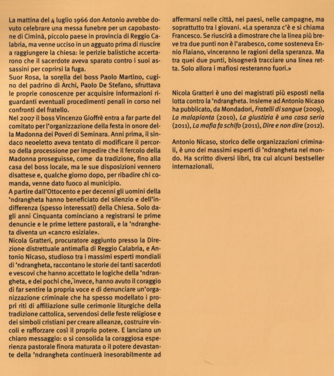 | Titolo completo | Acqua santissima : la Chiesa e la 'Ndrangheta: storie di potere, silenzi e assoluzioni / Nicola Gratteri, Antonio Nicaso |