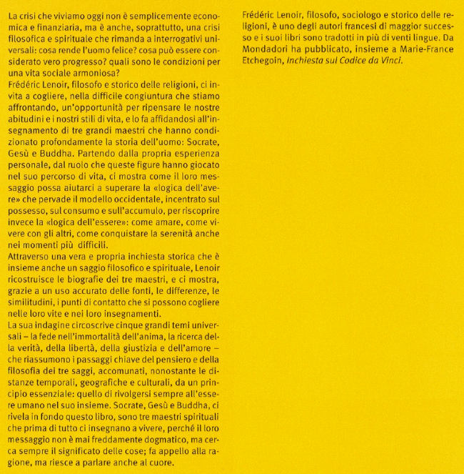 | Titolo completo | Socrate, Ges, Buddha : tre vite parallele, tre maestri di vita / Frédéric Lenoir |