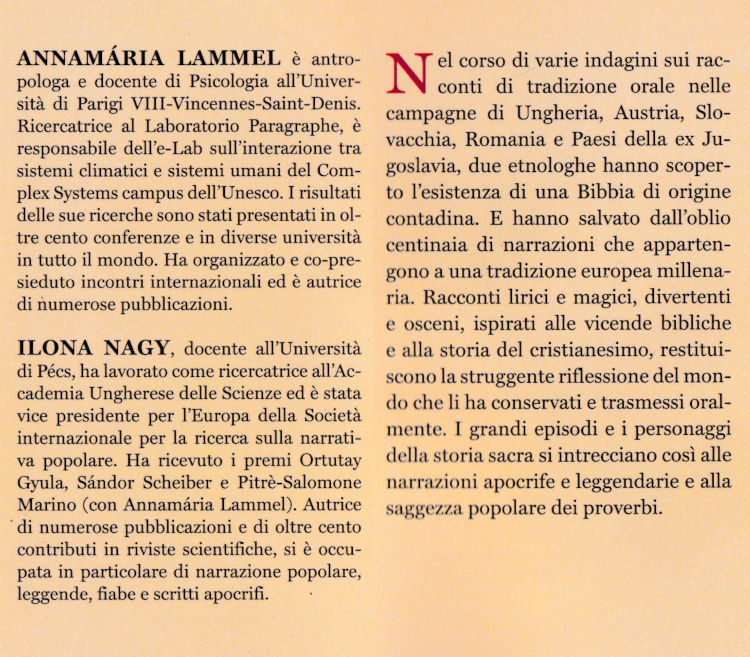 | Titolo completo | La Bibbia contadina : storie e leggende / Annamaria Lammel, Ilona Nagy ; ed. italiana a cura di Roberto Alessandrini |
