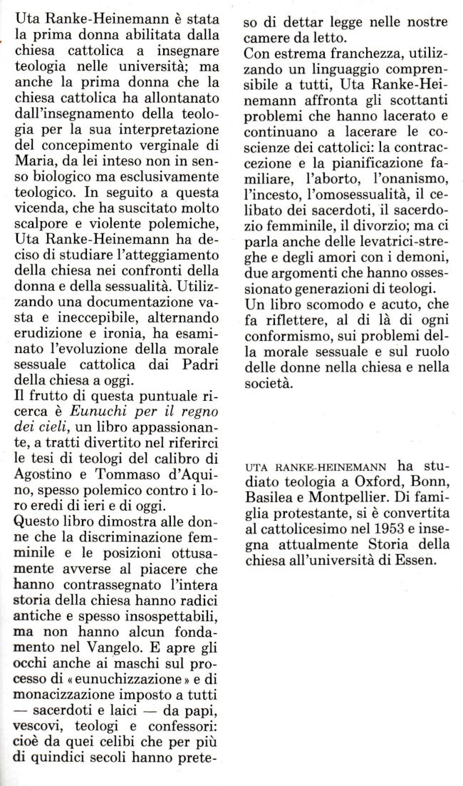 | Titolo completo | Eunuchi per il regno dei cieli / Uta Ranke-Heinemann ; traduzione di Enea Riboldi |
