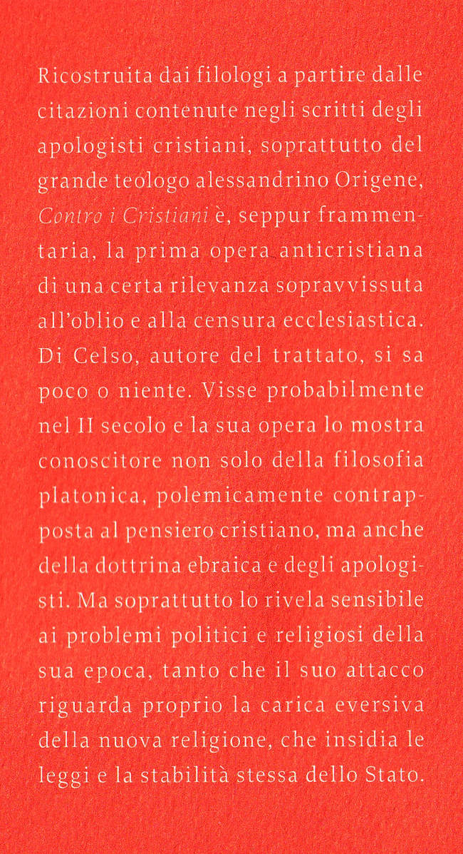 | Titolo completo | Contro i cristiani / Celso ; traduzione e note di Salvatore Rizzo ; prefazopme do Armando Torno |