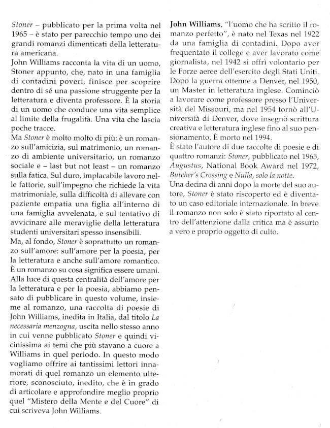 | Titolo completo | Stoner e La necessaria menzogna : poesie / John Williams ; traduzione di Stefano Tummolini |