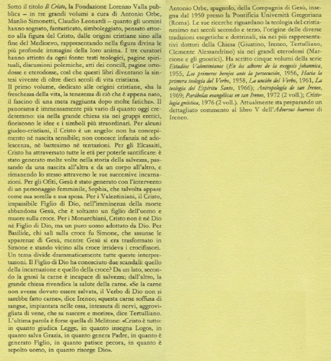 Vol. 1: Testi teologici e spirituali dal 1. al 4. secolo / a cura di Antonio Orbe |