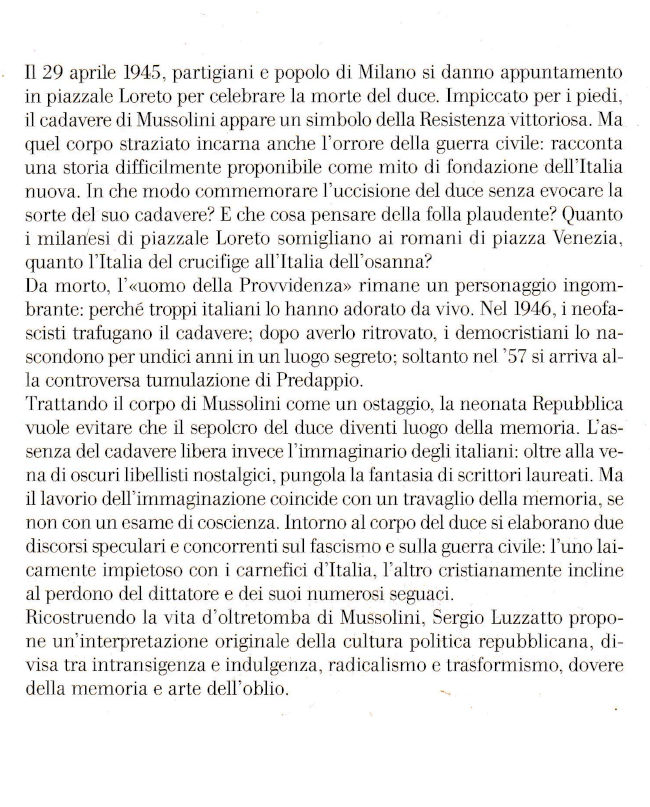 Il corpo del duce : un cadavere tra immaginazione, storia e memoria / Sergio Luzzatto |