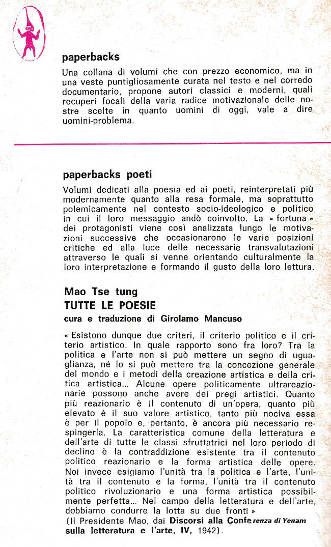 | Titolo completo | Tutte le poesie / Mao Tse tung ; introduzione di Alberto Moravia ; cura e traduzione di Girolamo Mancuso |