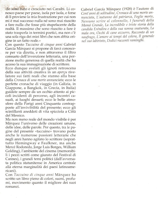 | Titolo completo | Taccuino di cinque anni : 1980-84 / Gabriel García Márquez ; traduzione di Angelo Morino |