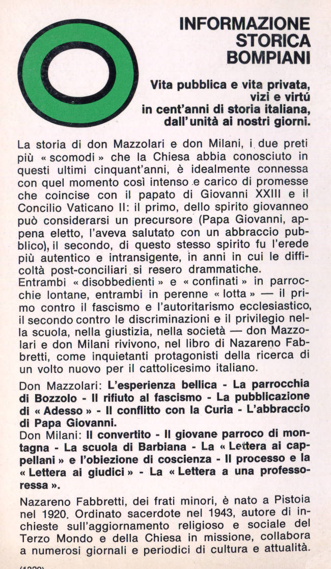 | Titolo completo | Don Mazzolari, don Milani : i "disobbedienti" / Nazareno Fabbretti |