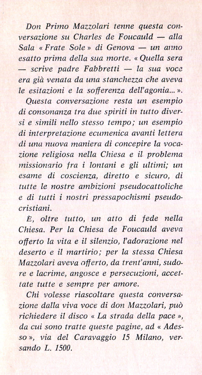 | Titolo completo | Charles de Foucauld / Primo Mazzolari ; prefazione di Nazareno Fabbretti |