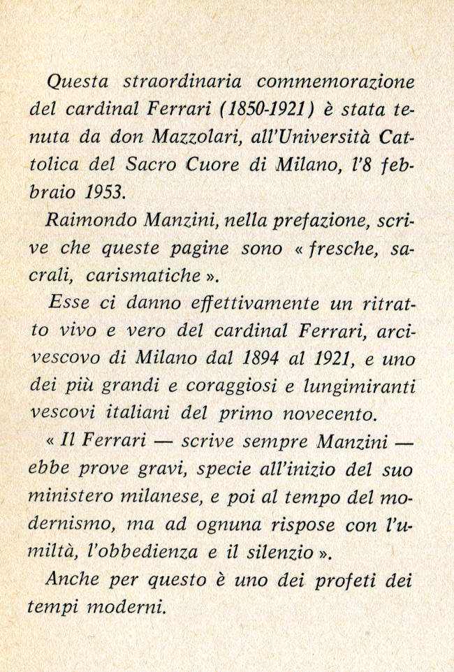| Titolo completo | Il cardinal Ferrari / Primo Mazzolari ; prefazione di Raimondo Manzini |