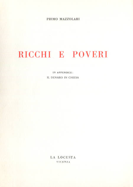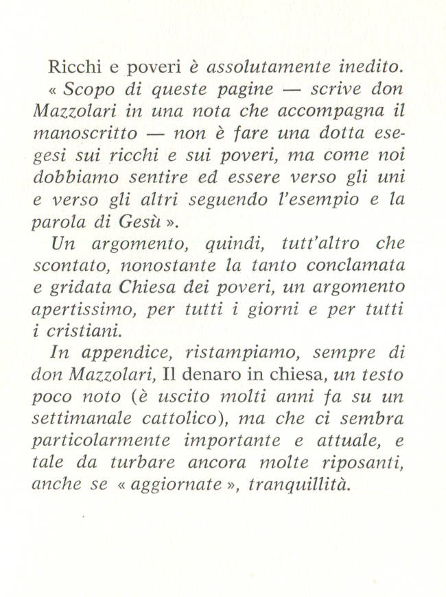 | Titolo completo | Ricchi e poveri / Primo Mazzolari ; in appendice: Il denaro in Chiesa |