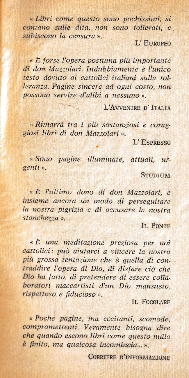| Titolo completo | Della tolleranza / Primo Mazzolari |