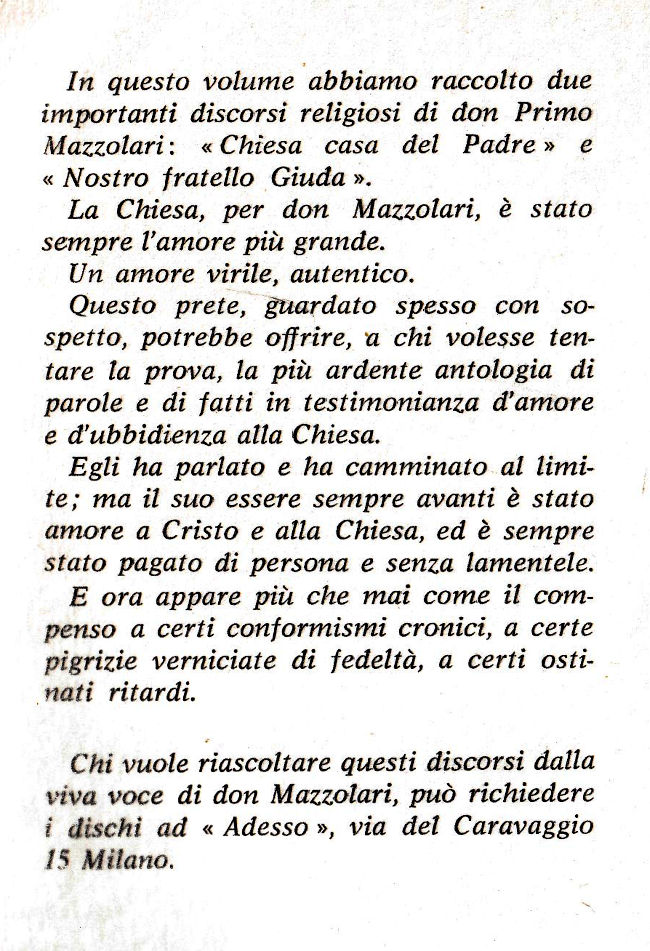 | Titolo completo | Chiesa casa del Padre ; Nostro fratello Giuda / Primo Mazzolari |