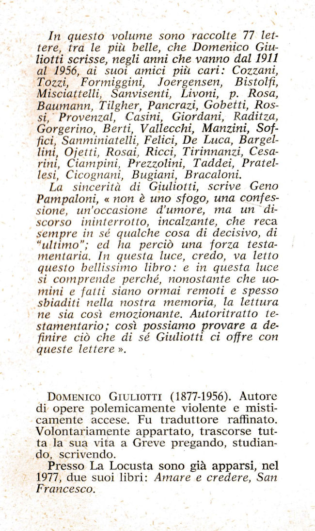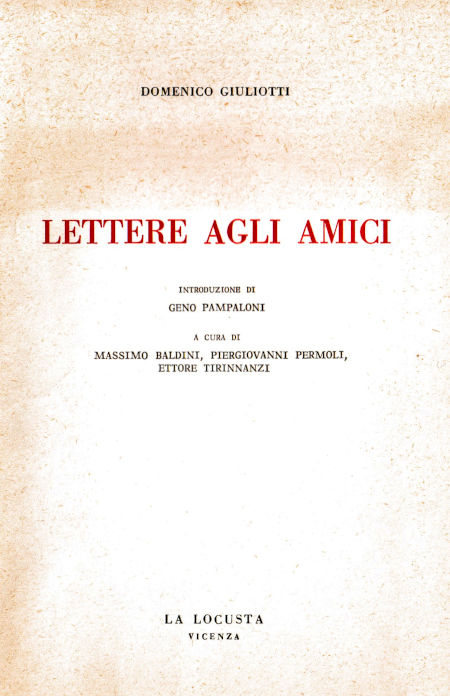 | Titolo completo | Lettere agli amici / Domenico Giuliotti ; introduzione di Geno Pampaloni ; a cura di Massimo Baldini, Piergiovanni Permoli, Ettore Tirinnanzi |