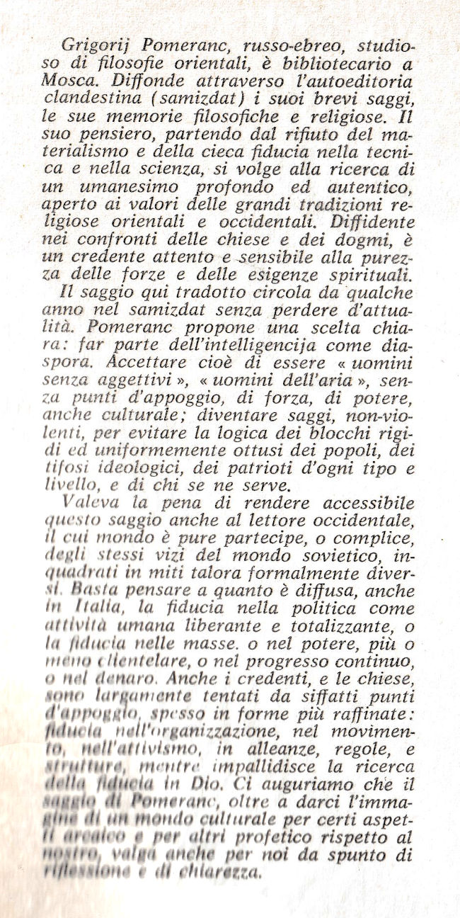 L'uomo da nessun luogo / Grigorij Pomeranc |