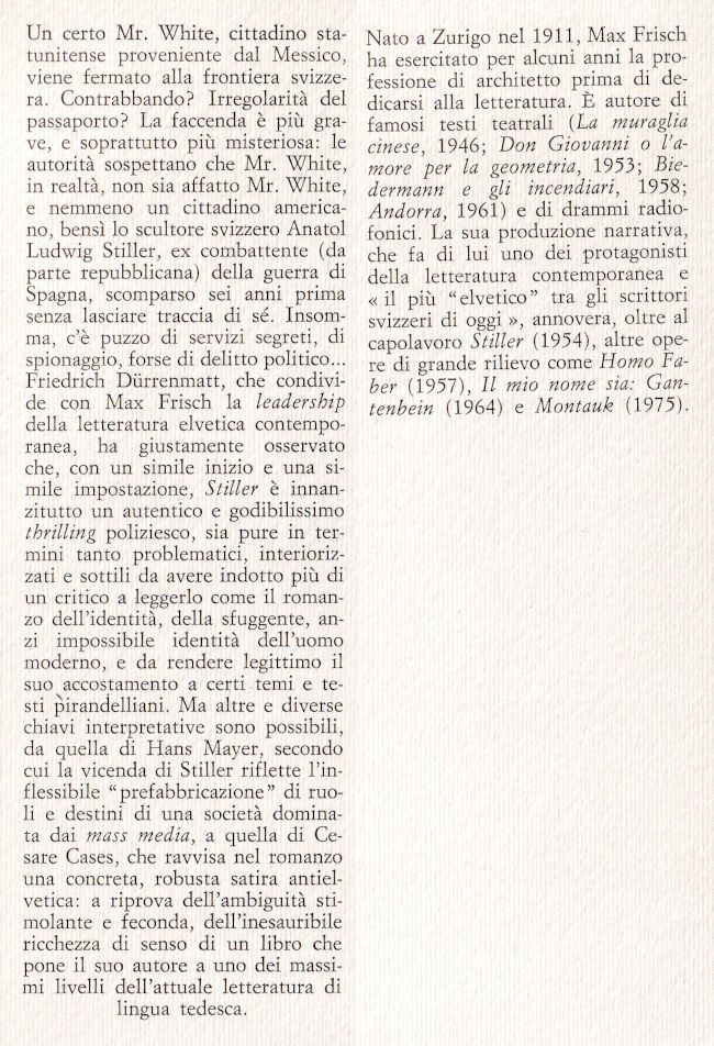 | Titolo completo | Stiller : romanzo / Max Frisch ; traduzione di Amina Pandolfi ; postfazione di Italo Alighiero Chiusano |