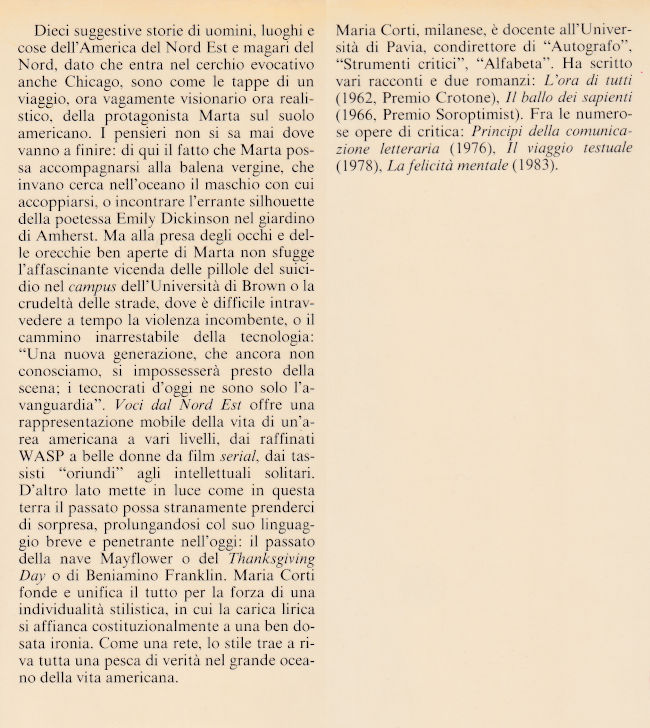 | Titolo completo | Voci dal Nord Est : taccuino americano / Maria Corti |