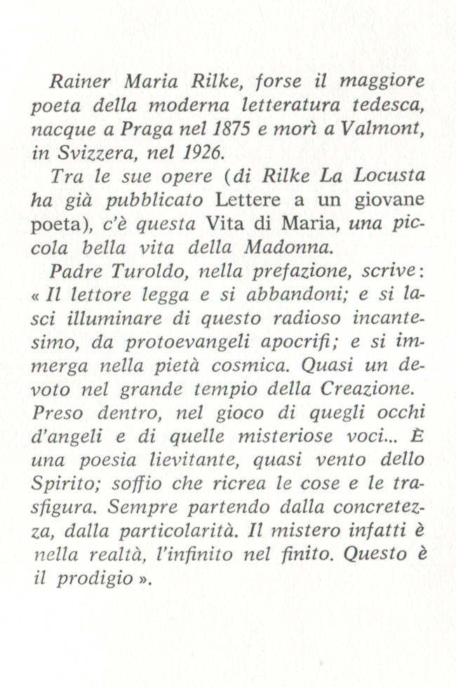 | Titolo completo | La vita di Maria / Rainer Maria Rilke ; prefazione di David Maria Turoldo |