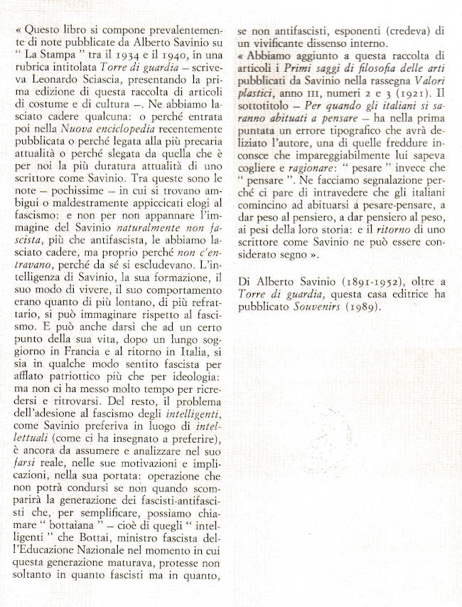 | Titolo completo | Torre di guardia / Alberto Savinio ; a cura di Leonardo Sciascia ; con un saggio di Salvatore Battaglia |