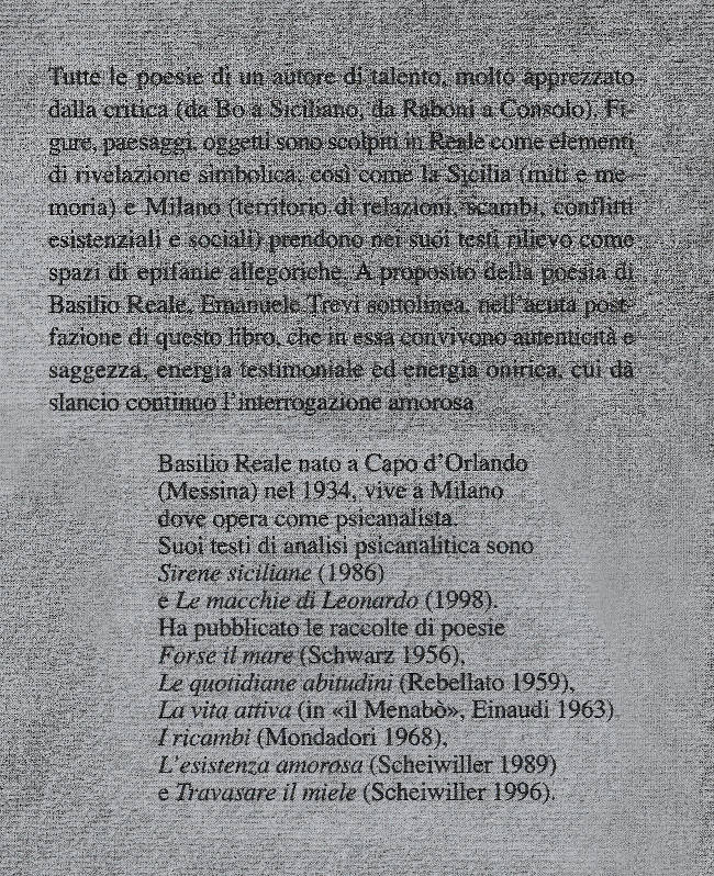 | Titolo completo | La balena di ghiaccio : poesie 1955-1999 / Basilio Reale ; postfazione di Emanuele Trevi |