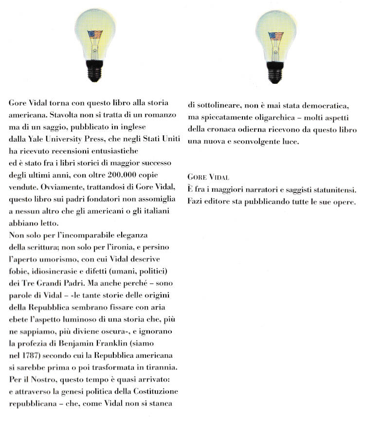 | Titolo completo | L'invenzione degli Stati Uniti : i padri: Washington, Adams, Jefferson / GoreVidal ; traduzione di Maria Astrologo |
