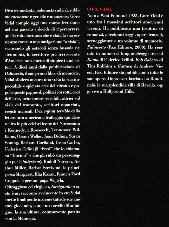 | Titolo completo | Navigazione a vista / Gore Vidal ; traduzione di Caterina Cartolano |