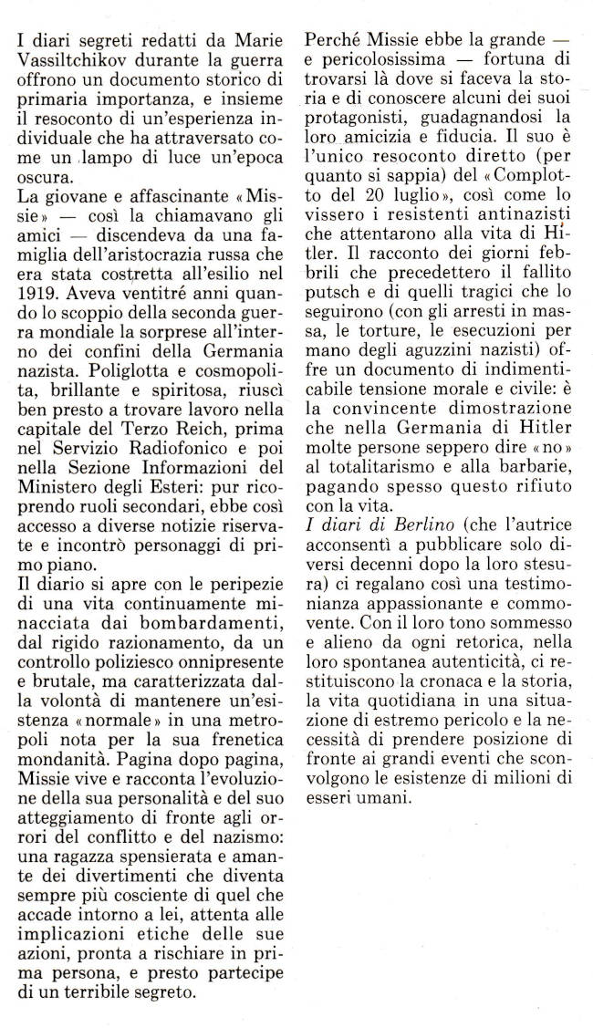 | Titolo completo | I diari di Berlino : (1940-45) / Marie Vassilchikov ; traduzione di Annita Biasi Conte |