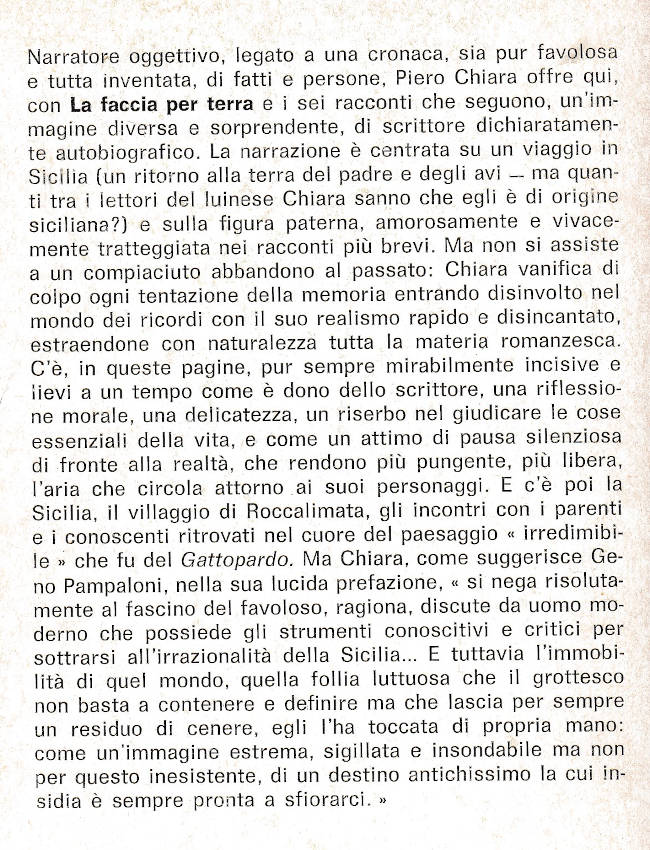 | Titolo completo | Con la faccia per terra e altre storie / Piero Chiara ; introduzione di Geno Pampaloni |