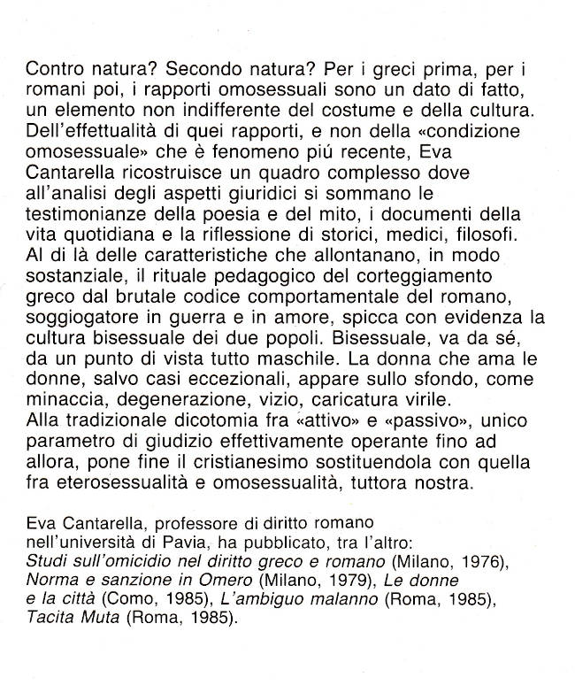 | Titolo completo | Secondo natura : la bisessualità nel mondo antico / Eva Catarella |
