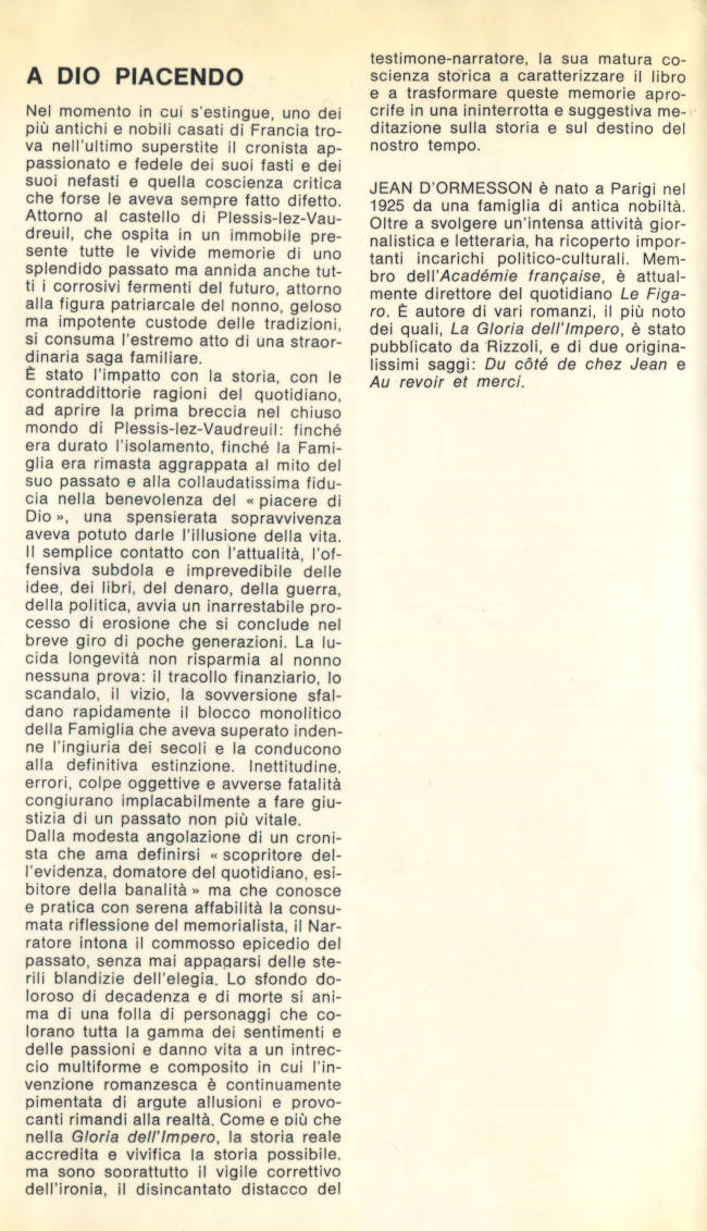 | Titolo completo | A Dio piacendo / Jean d'Ormesson ; traduzione di Giovanni Bogliolo |