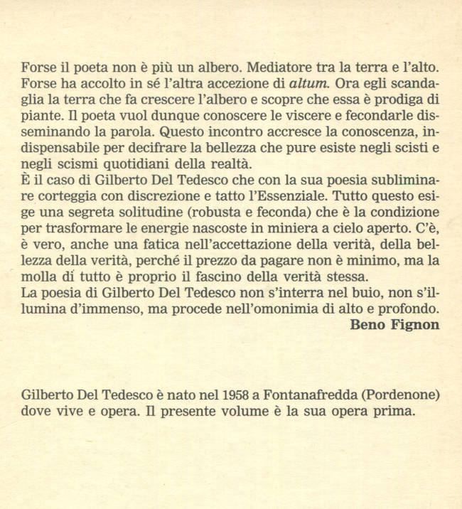 | Titolo completo | La segreta solitudine : poesia / Gilberto Del Tedesco ; introduzione di Maurizio Alzetta |