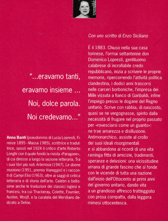 | Titolo completo | Noi credevamo / Anna Banti ; postfazione di Enzo Siciliano |