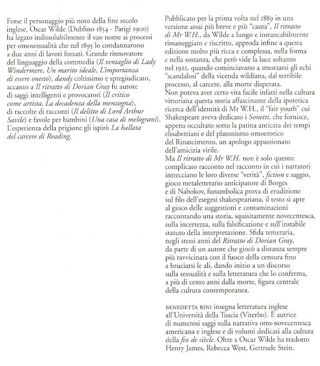 | Titolo completo | Il ritratto di Mr. W.H. / Oscar Wilde ; a cura di Benedetta Bini |