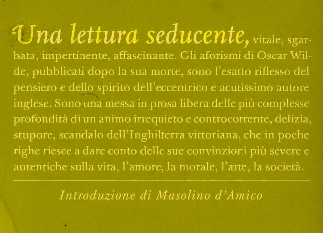 | Titolo completo | Detti e aforismi / Oscar Wilde ; introduzione di Masolino D'Amico ; traduzione di Alberto Rossatti |