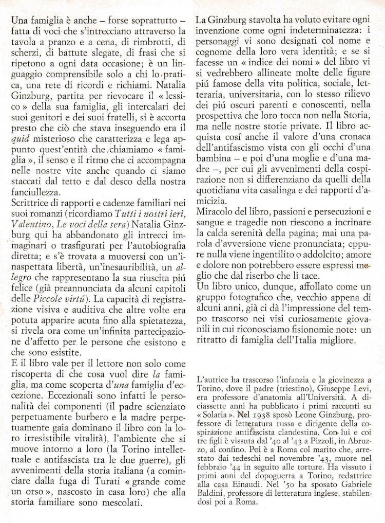 | Titolo completo | Lessico familiare / Natalia Ginzburg |